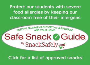 *Please check out Safe Snack List below before you bring in treats/snacks or other items for the classrooms. If your child has eaten nuts prior to coming to school, please be sure your child’s hands have been washed with soap and water prior to entering the school.